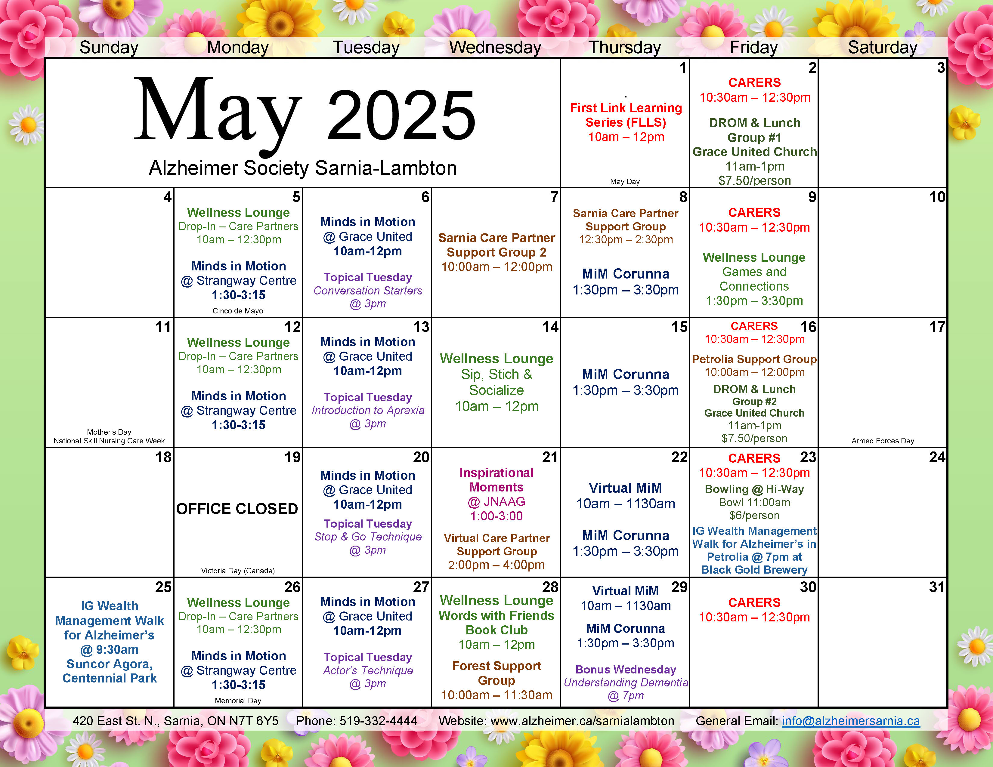 Find support in Sarnia-LambtonThe Alzheimer Society of Sarnia-Lambton offers plenty of information and support opportunities for individuals who have Alzheimer's and related dementia, their care partners, family and friends.